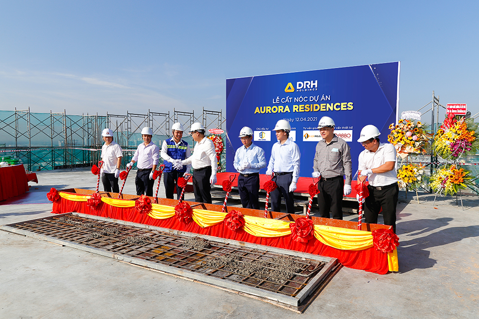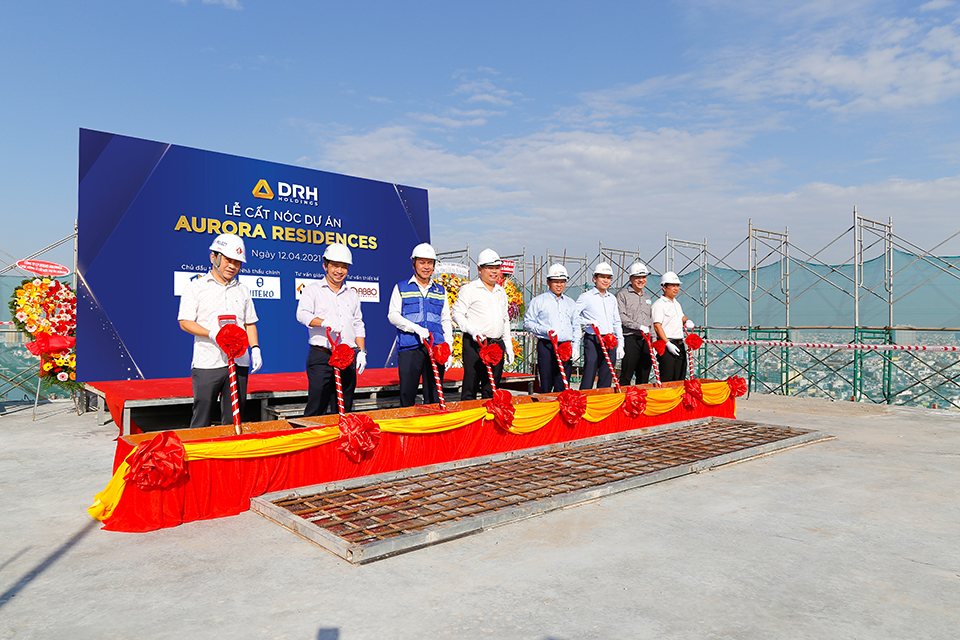 Sáng ngày 12/04/2021, chủ đầu tư Công ty TNHH Đầu tư BĐS Bình Đông cùng nhà thầu và các đối tác tổ chức lễ cất nóc dự án Aurora Residences tọa lạc tại số 277 Bến Bình Đông, phường 14, quận 8, Tp.HCM.