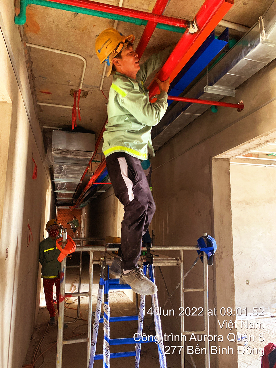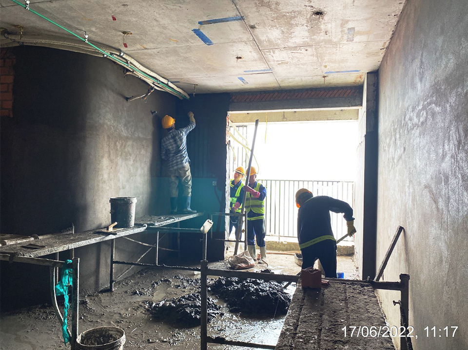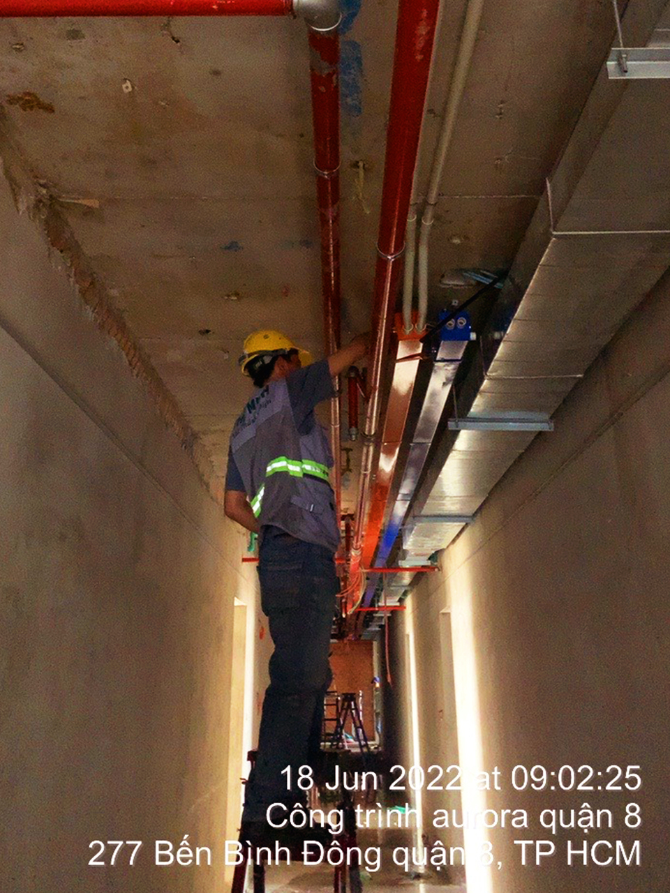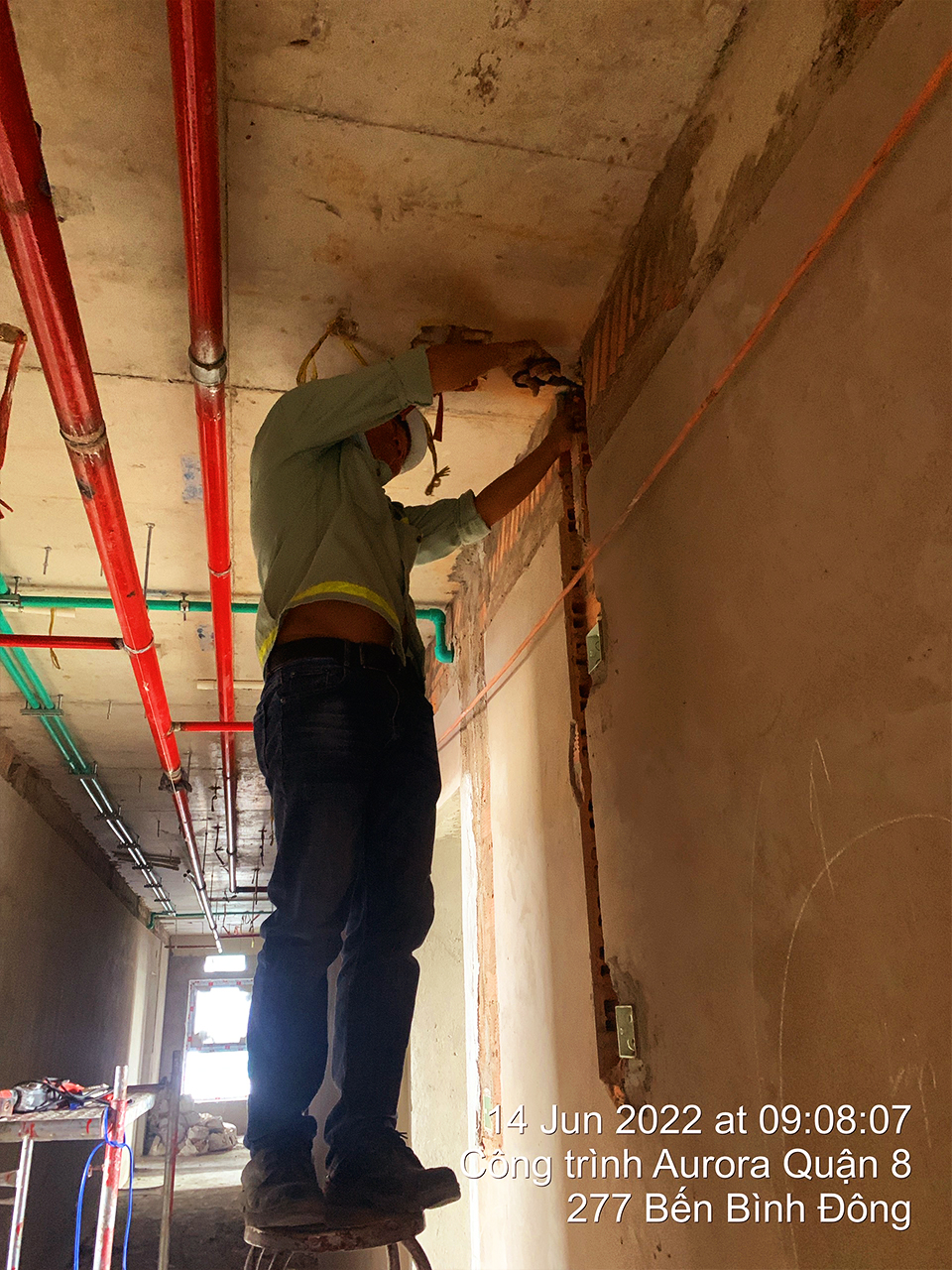 Tiến độ dự án Aurora Residences (tuần 3 - tháng 06.2022) : thi công điện âm tường, thi công hệ thống điều hòa không khí, thi công hệ thống phòng cháy chữa cháy, kéo dây căn hộ tầng 9, tô tường hành lang tầng 16, thi công tô tường tầng 17, thi công tô tường tầng 18.