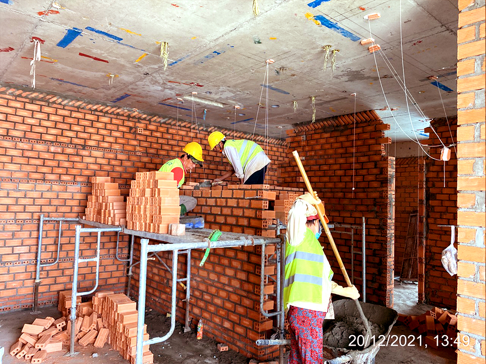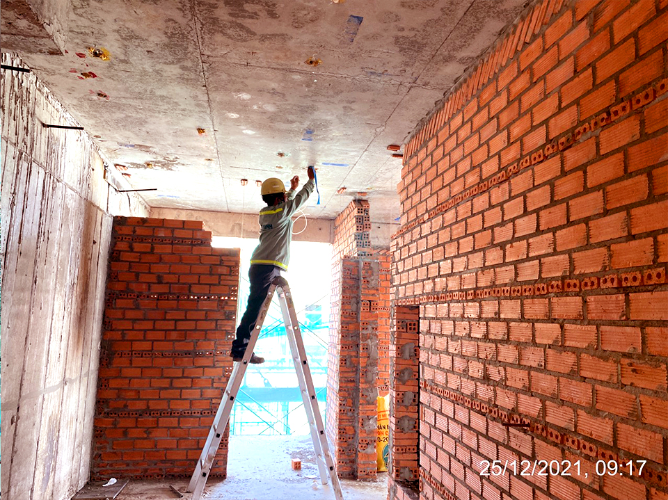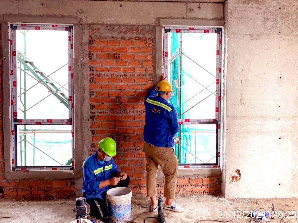- Tháp A: thi công lắp đặt cửa nhôm, M&E và tô tường trong